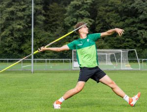 Bei seinen bereits 3. Süddeutschen Meisterschaften startete Jakob im Speerwurf am Wochenende in St. Wendel.  Von Anfang an stand fest, dass es schwierig wird gegen den ein Jahr älteren Jahrgang der U18 im Kampf um die Medaillen einzugreifen. Er begann mit einem Wurf über 58m, den er in Versuch 4 auf starke 59,58m steigern konnte. Damit blieb er nur knapp unter seiner PB (59,84m). Am Ende reichte es zu einem sehr guten 4. Platz als bester seines Jahrgangs mit einem knappen Meter Abstand zu Bronze. Mit einer stabilen Serie setzt Jakob seine tolle Entwicklung der letzten Wochen fort zeigte er ansteigende Form in Richtung Saisonhöhepunkt, der in knapp 2 Wochen mit der DM in Bochum-Wattenscheid ansteht. Dafür wünschen wir Dir viel Erfolg und Glück.